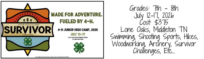 Tennessee 4-H offers a variety of camps and programs geared to specific age groups and to youth with special interests.